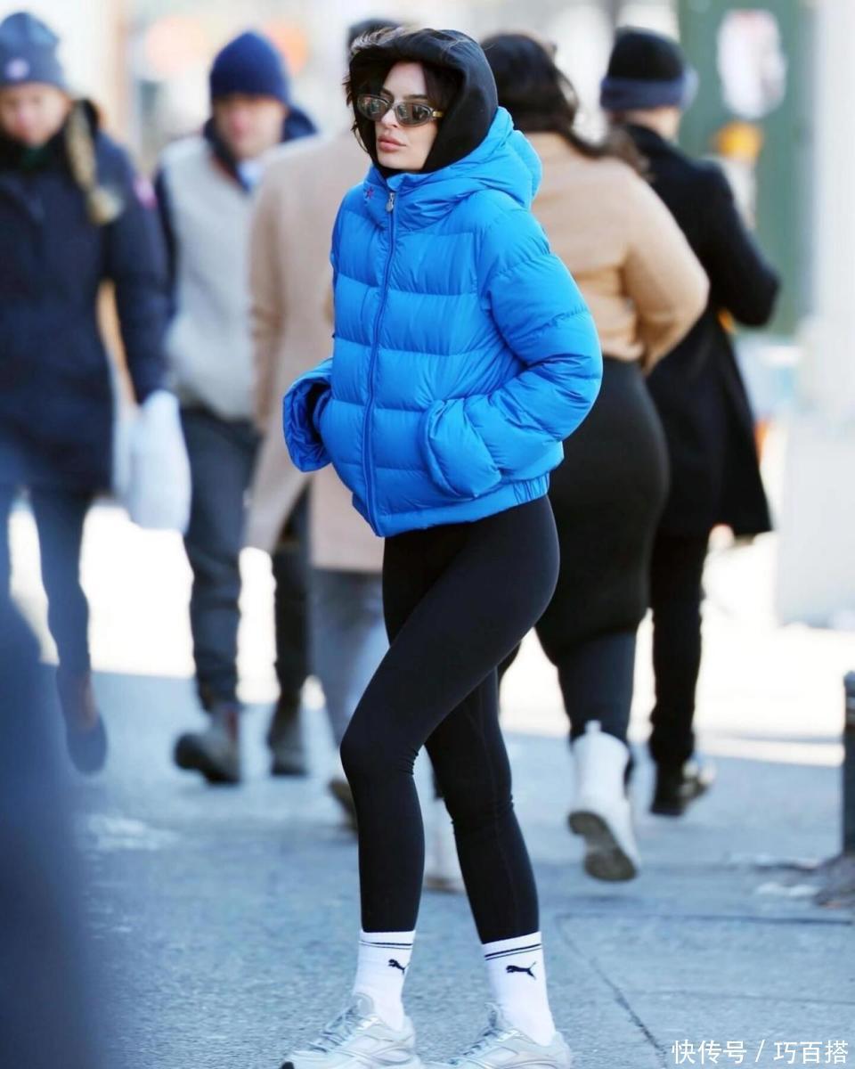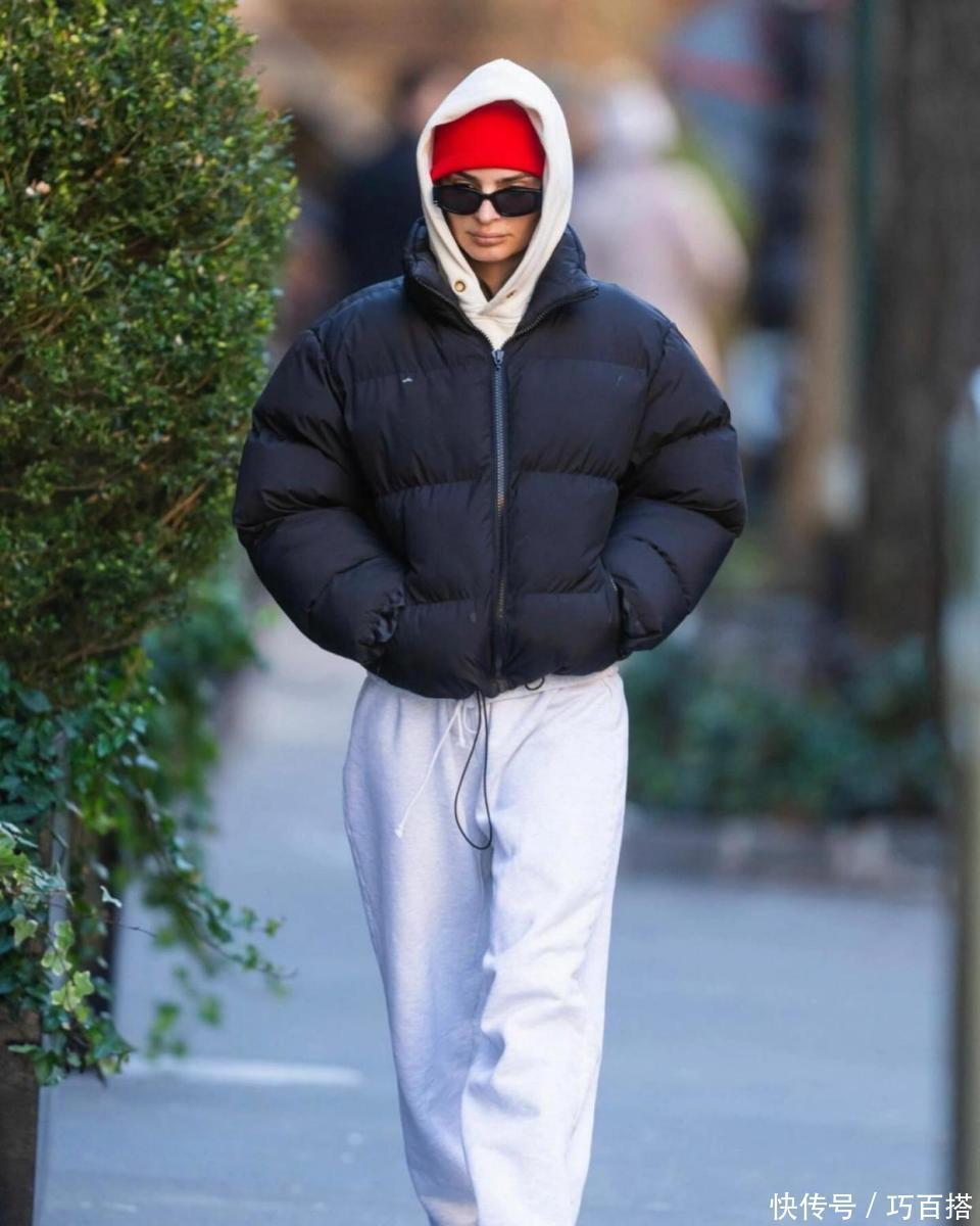 除了紧身打底衫外,日常穿羽绒服外出,还不错与连帽卫衣搭配,